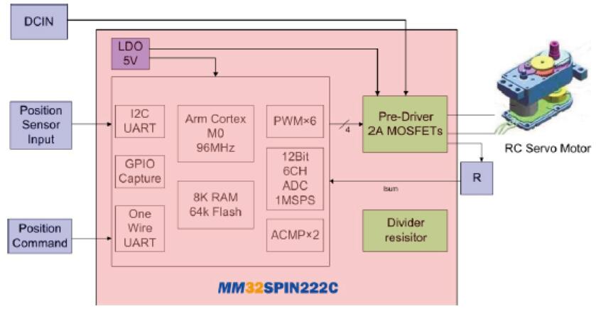 機(jī)器人舵機(jī) | MM32SPIN222C | ● 高效率,集成度高 ● 一體化 ● 位置、速度控制 ● 保護(hù)功能:過流保護(hù) ● 電壓范圍:5~15V |