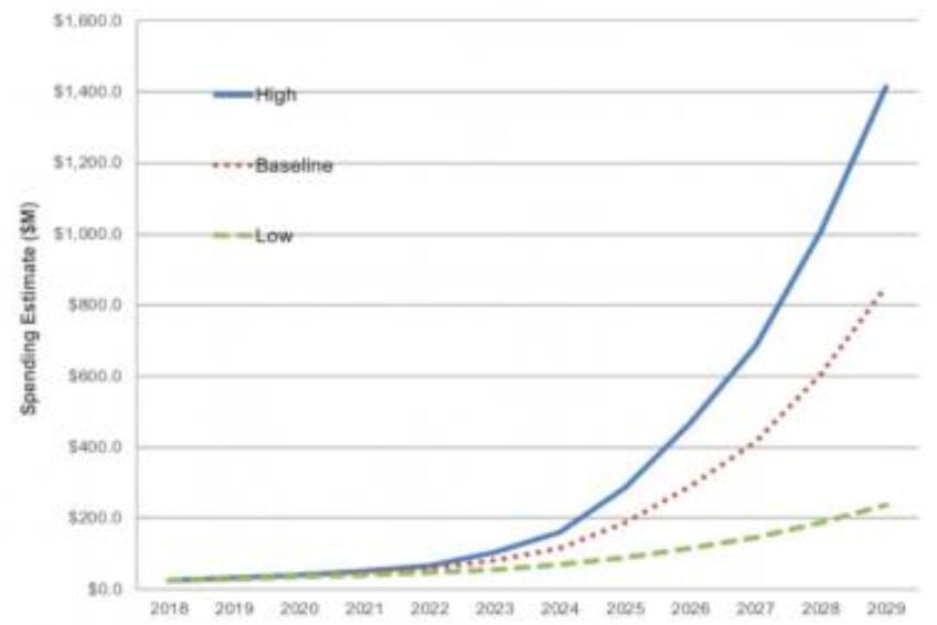 對(duì)MRAM存儲(chǔ)器的巨大需求將刺激設(shè)備支出的穩(wěn)步增長。預(yù)計(jì)MRAM設(shè)備市場(chǎng)將從2018年的2600萬美元增長到2029年的854美元-增長33倍。
