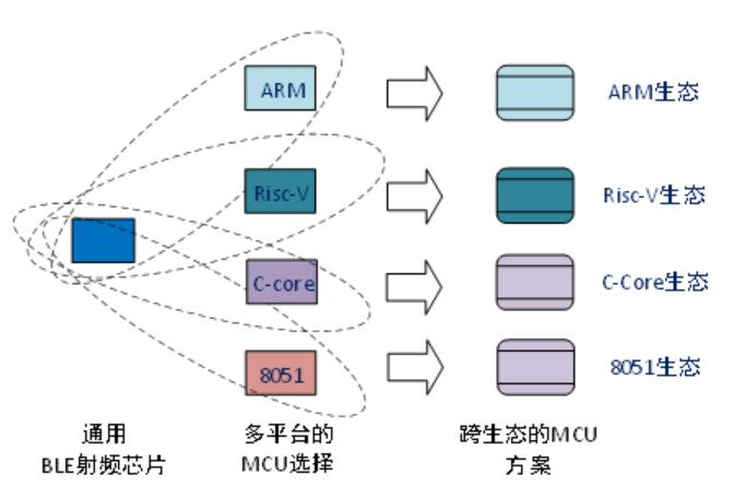 這樣,通過將通用ble射頻芯片和多樣化的微控制器芯片相結(jié)合,制造商可以快速組合多樣化和靈活的BLE單芯片或模塊化解決方案,以滿足不同的生態(tài)需求和市場(chǎng)需求。