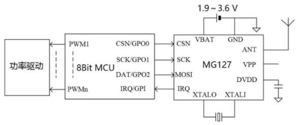 藍牙芯片MG127是具有低功耗、低成本的BLE 收發(fā)器,內(nèi)部集成了發(fā)射機、接收機、GFSK 調(diào)制解調(diào)器和BLE 基帶處理。電源電壓1.9~3.6,可以采用一個紐扣電池(3.0v)供電,具備3uA待機電流,20mA@0dBm持續(xù)發(fā)射,18mA持續(xù)接收等特點。MG127 采用DFN3x3 封裝,只需搭配低成本MCU 和少數(shù)外圍被動器件,即可實現(xiàn)BLE 遙控、藍牙電子秤等應用。