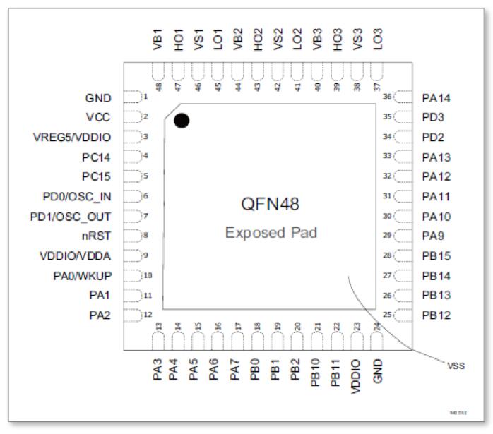 國產(chǎn)32位MCU MM32SPIN360豐富的外設(shè)配置適合于三相永磁無刷電機和電動工具等應(yīng)用場合。