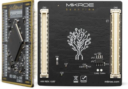 MCU卡是標(biāo)準(zhǔn)化的附加板,可以非常簡(jiǎn)單地在配有MCU卡插槽的開發(fā)板上安裝和更換MCU。通過(guò)引入新的單片機(jī)卡標(biāo)準(zhǔn),我們確保了開發(fā)板與任何受支持的MCU之間的絕對(duì)兼容性,無(wú)論其引腳號(hào)和兼容性如何。MCU卡配備了兩個(gè)168針夾層連接器,從而使它們甚至可以支持具有極高引腳數(shù)的MCU。遵循Clickboard™產(chǎn)品線公認(rèn)的即插即用概念,其巧妙的設(shè)計(jì)允許非常簡(jiǎn)單的使用。