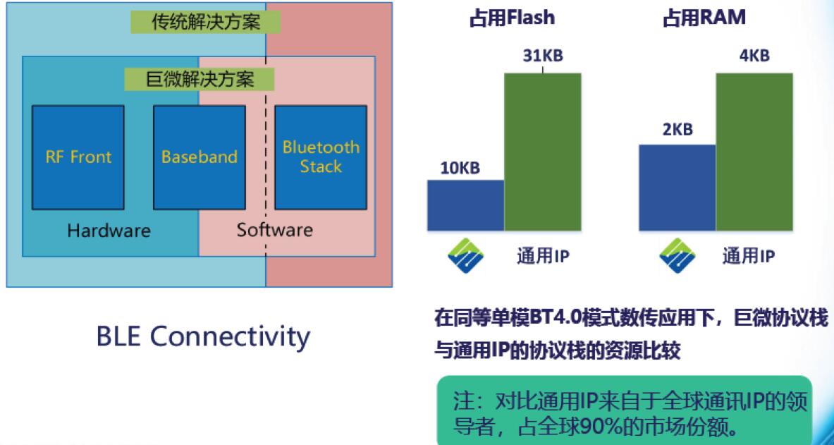 實現(xiàn)BLE 遙控、藍牙鍵盤等數據傳輸應用,需要搭配Cortex-M0 或者M3 的MCU,具體資源需求如下: