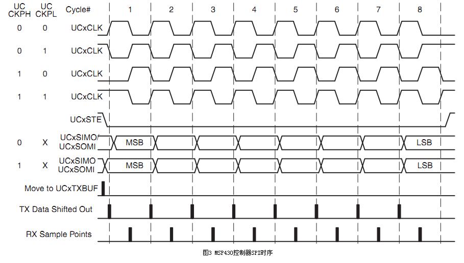 在SPI操作中,最重要的兩項設置就是時鐘極性(CPOL或UCCKPL)和時鐘相位(CPHA或UCCKPH)。時鐘極性設置時鐘空閑時的電平,時鐘相位設置讀取數據和發(fā)送數據的時鐘沿。