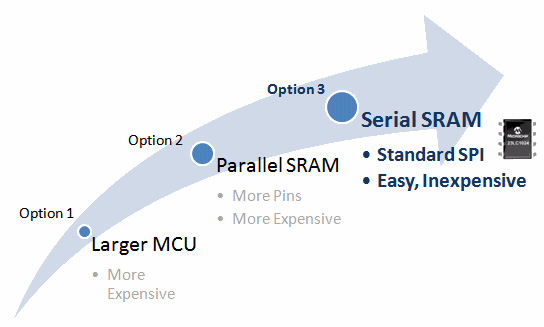 3. 串行SRAM現(xiàn)在支持向設(shè)計(jì)中靈活添加RAM,而不會(huì)帶來大型單片機(jī)或并行RAM的缺點(diǎn),它使用簡(jiǎn)單的4引腳SPI接口。 SDI和SQI接口可將數(shù)據(jù)速率提高4倍,這些器件還會(huì)通過這兩個(gè)接口來提升性能。