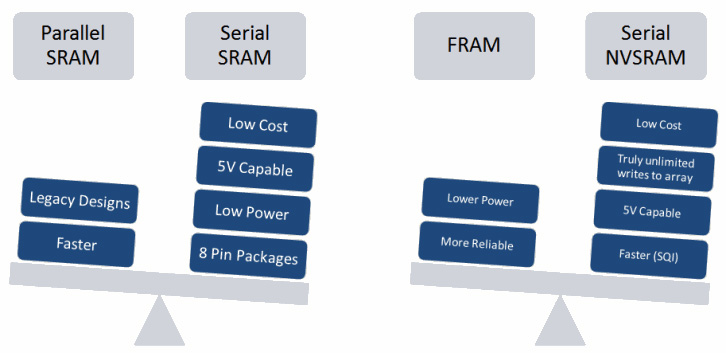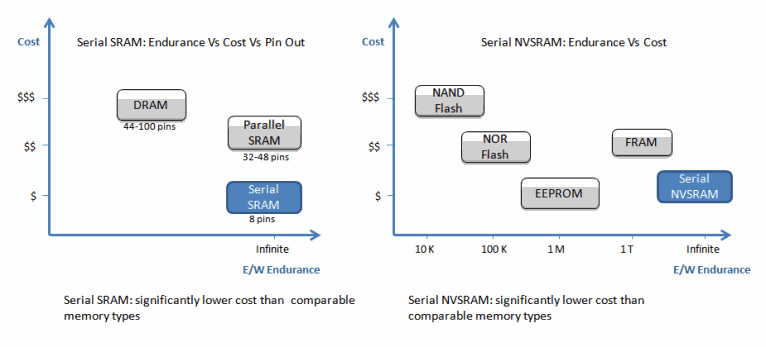 串行SRAM和NVSRAM在尺寸、電壓、速度、功耗和成本等方面帶來了諸多優(yōu)勢(shì)。