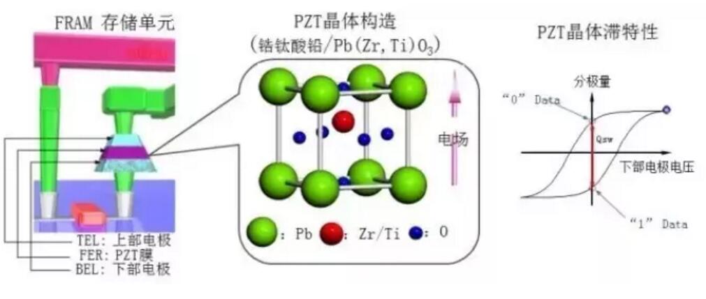 FRAM是運(yùn)用鐵電材料(PZT等)的鐵電性和鐵電效應(yīng)來進(jìn)行非易失性數(shù)據(jù)存儲又可以像RAM一樣操作。